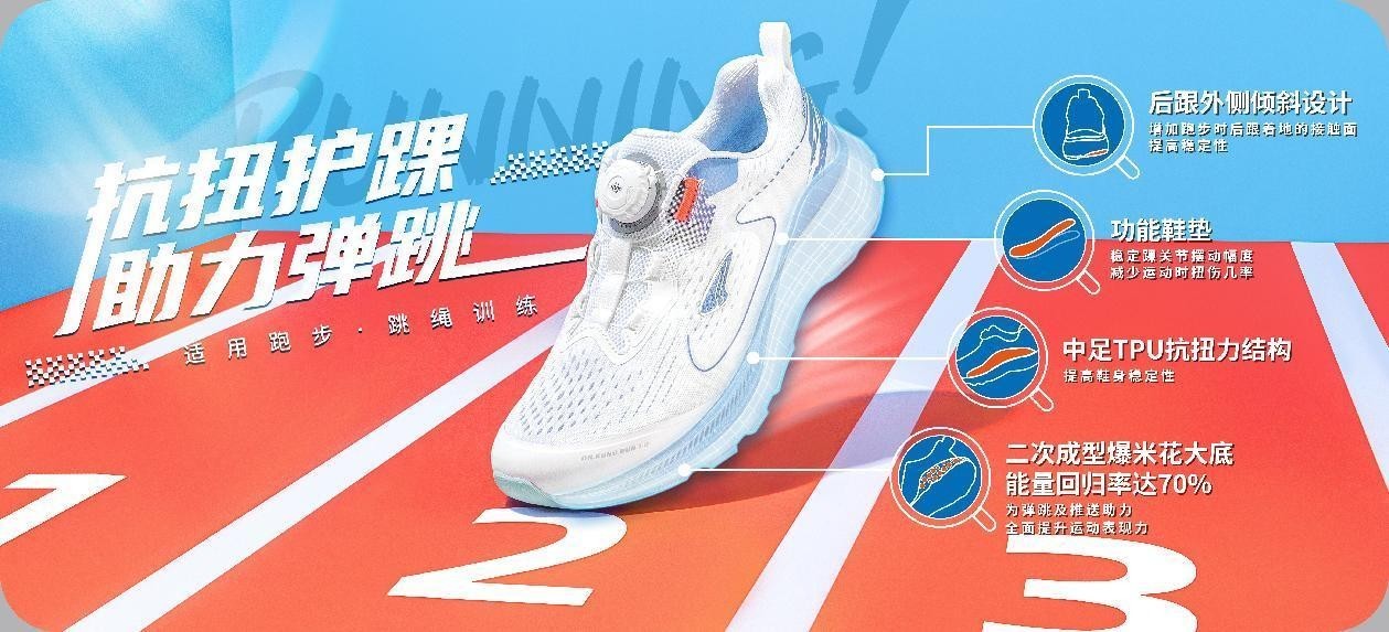 江博士健康鞋“少儿综训鞋”系列,特别为少儿日常跳绳、跑步等运动训练而设计。其二次成型爆米花大底,具有吸震及前掌迅速回弹作用,更轻、更稳、更弹,为弹跳及推送助力。更有中足TPU抗扭力结构及后跟杯加硬设计、后跟外侧倾斜设计、功能鞋垫等核心功能组合,能稳定踝关节摆动幅度,减少运动时扭伤几率,增强运动保护力,让孩子的日常运动也能享受到专业保护。