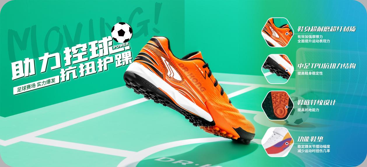 而针对足球运动,江博士健康鞋特别设计了“少儿足球训练鞋”系列。其超耐磨鞋身材质,能有效提高足球运动时如停球、传球的摩擦力和精准性。而中足TPU抗扭力结构、鞋底钉纹设计、功能鞋垫等核心功能组合,能帮助稳定踝关节,减少运动损伤几率,让孩子足球场上势如破竹。