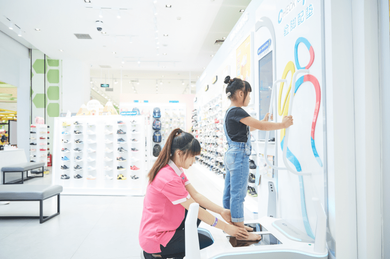 至于鞋垫则根据4~13岁儿童足部情况,分成4种不同足弓弧度及后跟斜度的鞋垫,家长们可以根据孩子的足部发育情况进行选择,有利于足弓健康成长。对于已经发育良好的足弓,可以选择具有温和足弓弧度的全接触鞋垫,这样的设计可以增加足弓的接触面积,平均分散压力,舒缓足部疲劳;对于足弓偏低的情况,可以根据实际足弓弧度选择弧度较高的鞋垫,以支撑低足弓,提高肌肉活动效率。与此同时,江博士门店还配备了“3D智能验脚仪”,家长们可以先带孩子进行验脚,系统便会根据具体情况配垫。