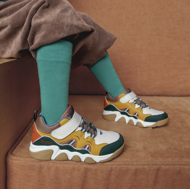 墨绿与栗棕的结合,搭配橡胶大底,秒凹复古造型!革面与网格拼接,为这个冬季更添暖意;加硬后跟杯在后,全接触鞋垫在中,舒适围度在前,专业打造护足“黑科技”;还有假绑带真魔术贴设计,既方便孩子穿脱,又为鞋子增加一丝休闲感,运动、日常皆可百搭。